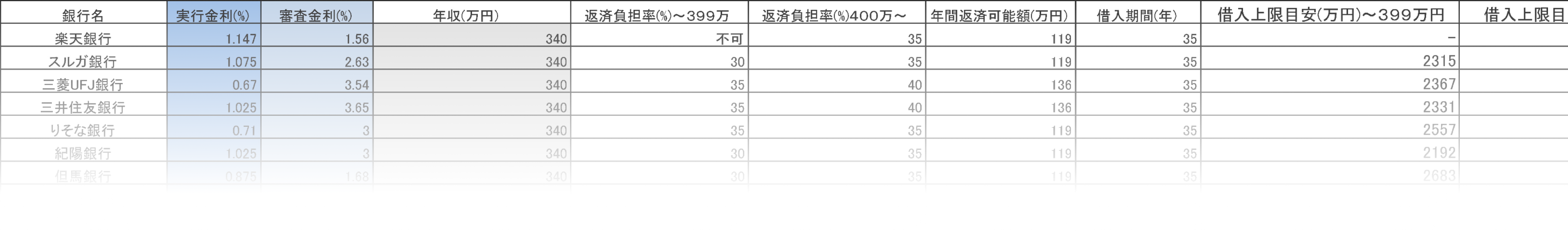 銀行ごとの借入可能金額が自動で表示されます。