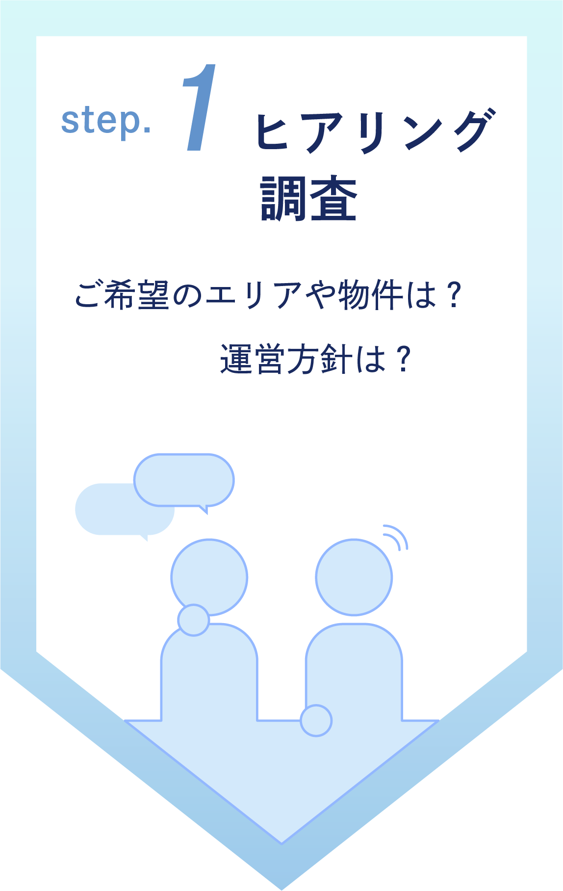 まずはご希望エリアやご予算、運営方針について丁寧にヒアリングいたします。